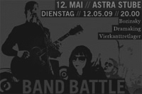 ![]() | 12.05.2009 Campus OpenAir Bandbattle (Hamburg) Wir spielen mit weiteren acht Bands vom 11. bis zum 13. Mai den Vorentscheid des Hamburger Campus OpenAir Bandbattle in der Astrastube. Am Dienstag, den 12. Mai geht's für uns mit Bozinski und Vierkanttretlager auf die Bühne. Weitere Mitspieler sind u.a. The Knights und Tonbandgerät. |