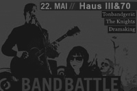 ![]() | 22.05.2009 Campus OpenAir Bandbattle - Finale (HH) Mit The Knights und Tonbandgerät spielen wir das Finale des Campus OpenAir Bandbattles 2009 im Kulturhaus III&70 am Schulterblatt. Einlass ab 20 Uhr. Beginn der ersten Band gegen 20.30 Uhr. Wir spielen als dritte Band ab 22.00 Uhr. Der Eintritt kostet 3 Euro. Das wird ein Fest... |